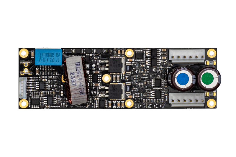 The AMPone® digital power amplifier module provides a unique stereo sound, thanks to an innovative switching technology. The wide frequency modulations with a load invariant loop control enable an exceptional dynamic response, along with very high efficiency. All protections, over-current, over-temperature, over-voltage, under-voltage and dc output detection are included, ensuring high reliability.